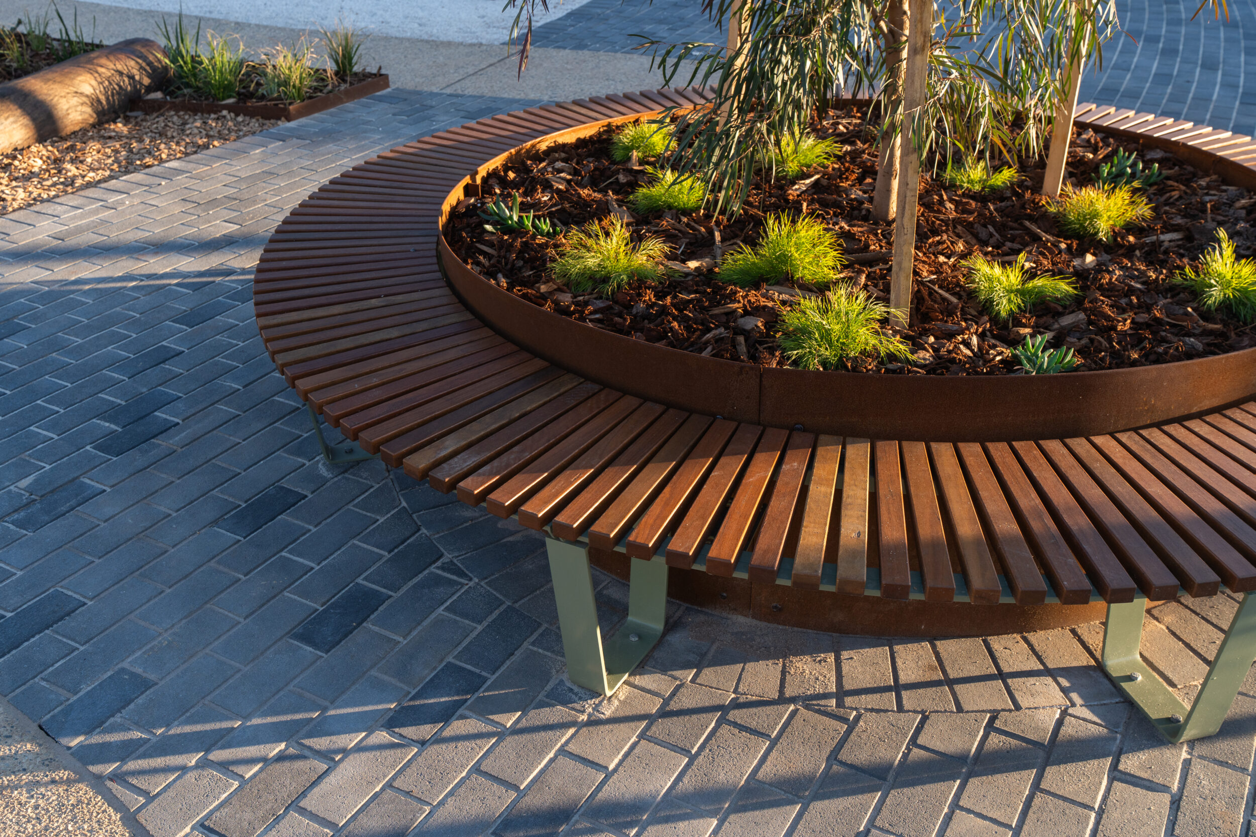 Cultural storytelling is woven throughout the landscape, with subtle references to Kaurna heritage and Japanese language studies, celebrating the school’s diverse and inclusive identity. The central tree and meeting area serve as a symbolic heart of the courtyard, representing growth, knowledge, and community.