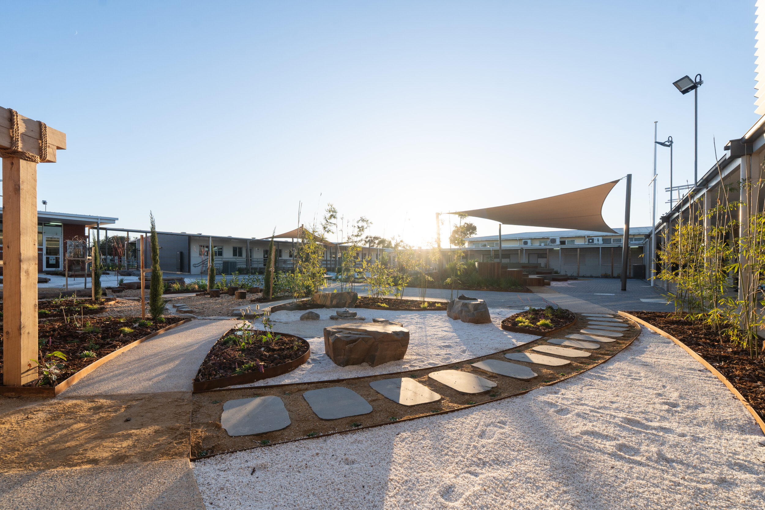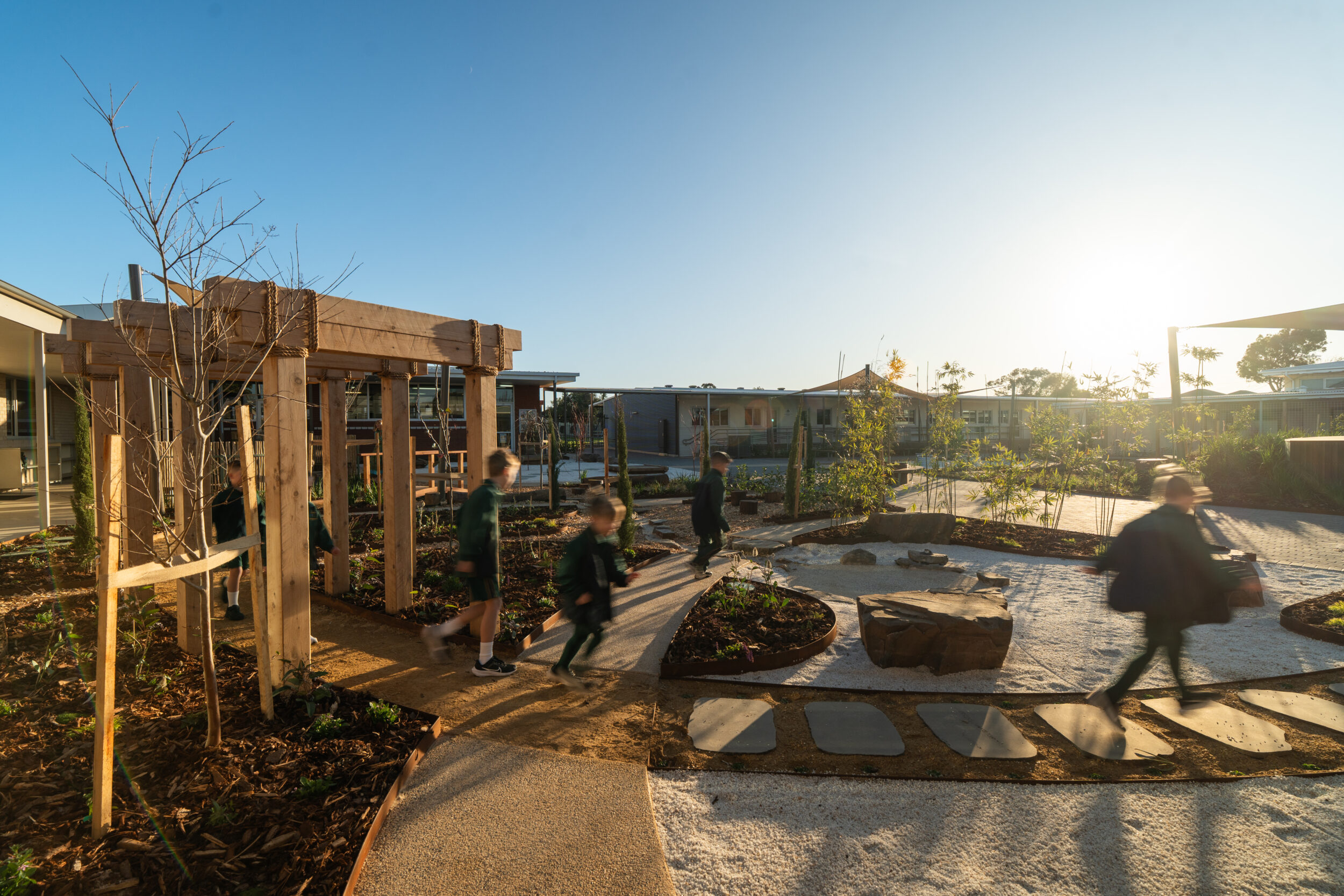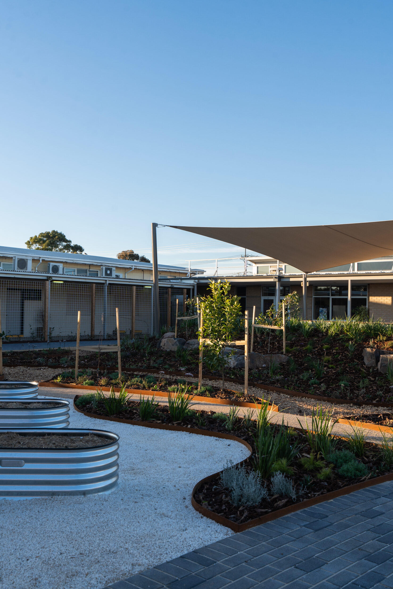 Working collaboratively with Catholic Education South Australia (CESA), BluScape Commercial Landscaping, and the school community, the design introduces a series of outdoor spaces that encourage exploration, play, and reflection. Inspired by the Reggio Emilia approach to education, the courtyard provides opportunities for self-guided learning through interaction with natural materials, vegetation, and sensory experiences.