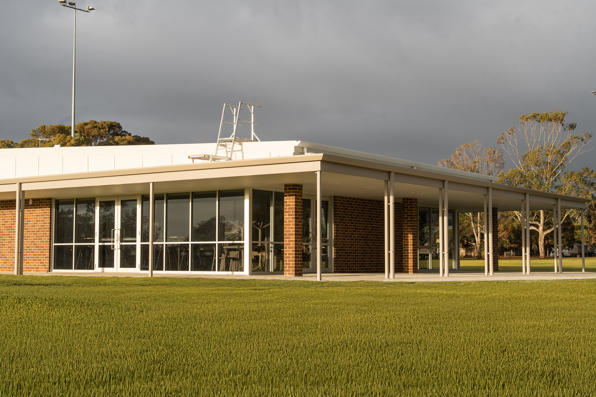 Positioned centrally between the two main playing fields, the new building provides clear sightlines across the reserve and serves as a functional hub for players, officials, and the wider community.