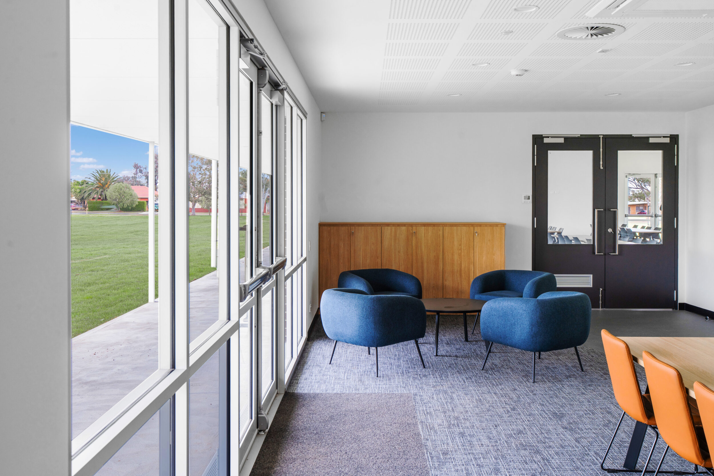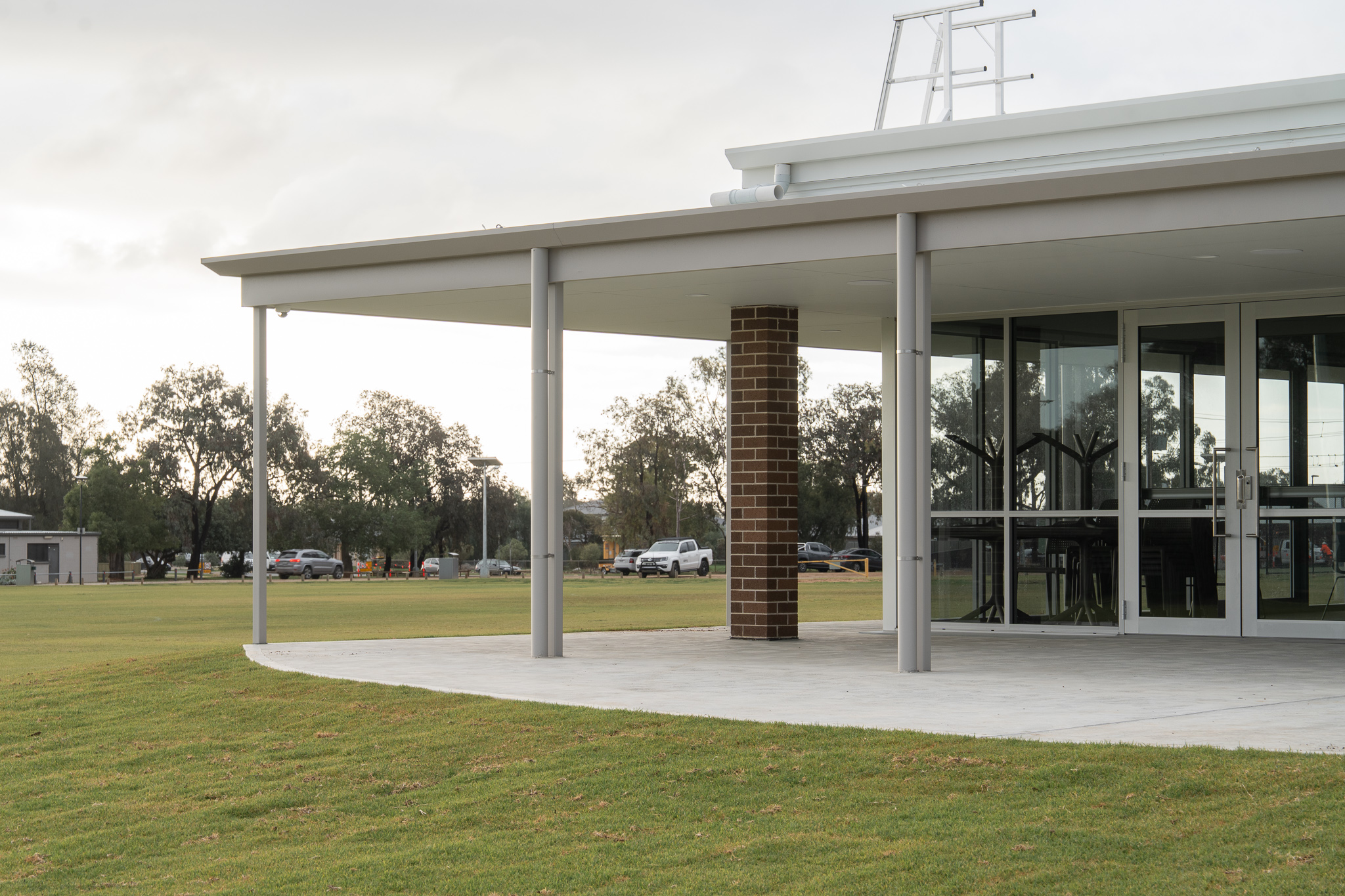 Positioned centrally between the two main playing fields, the new building provides clear sightlines across the reserve and serves as a functional hub for players, officials, and the wider community.